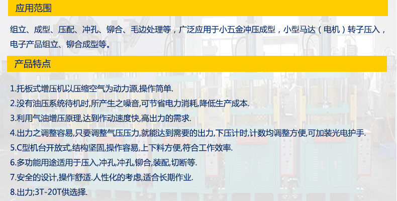 组立、成型、压配、冲孔、铆合、毛边处理等,广泛应用于小五金冲压成型,小型马达(电机)转子压入,电子产品组立、铆合成型等