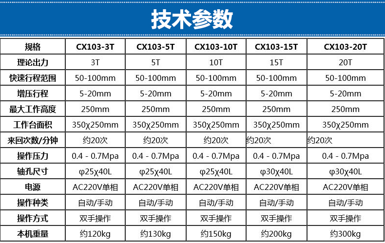 科鑫盟CX103系列C型增压机,又叫C型增压冲床,C型增压压床,利用空油压增压原理,达到动作速度快,高出力的要求; 4、出力调整容易,只要调整气压压力,就能达到需要的压力,简单又方便