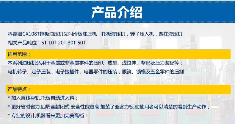 科鑫盟CX108T拖板油压机又叫滑板油压机,托板液压机,转子压入机,四柱液压机